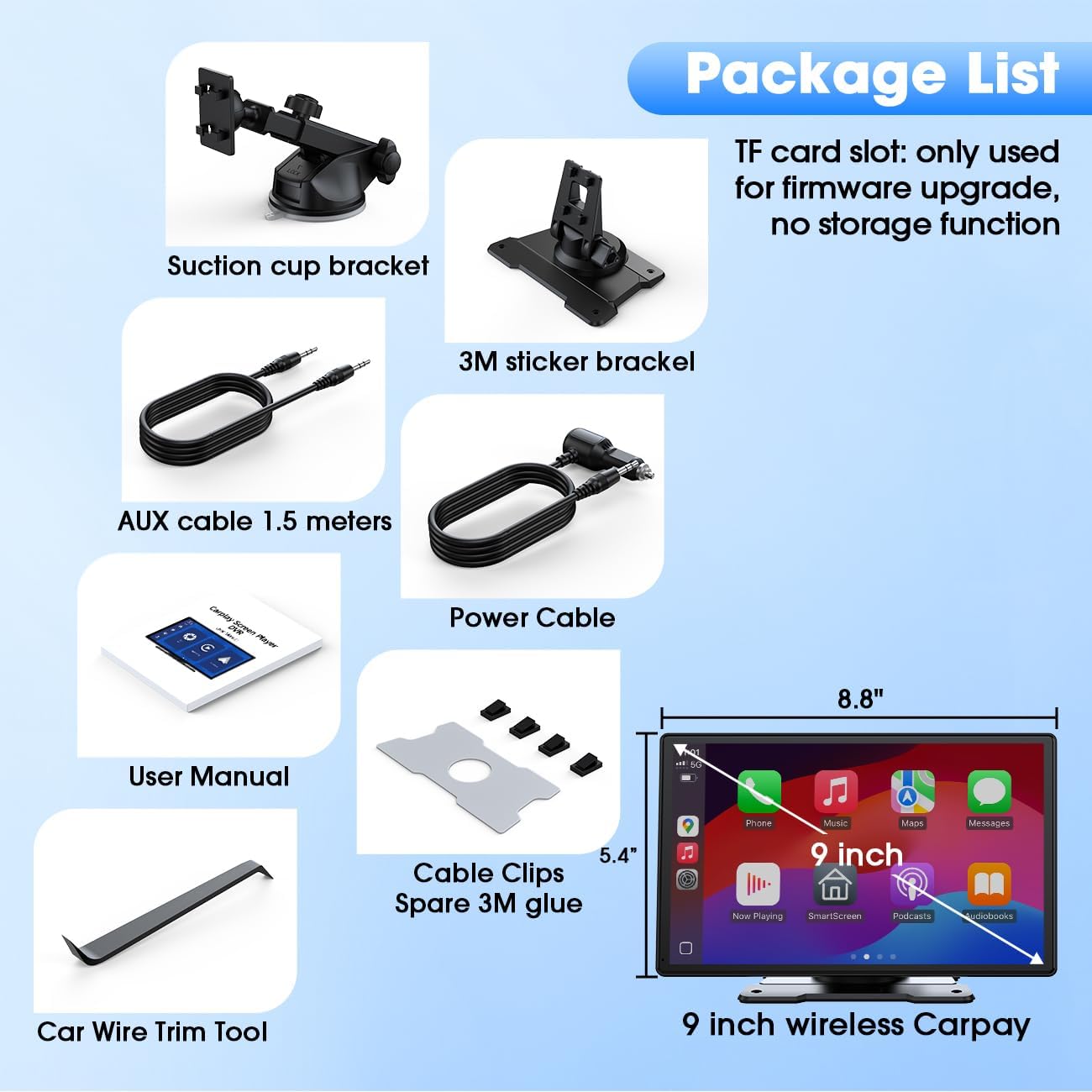 Upgrade Wireless CarPlay and Android Auto This 9-inch for Apple Carplay screen for car with wireless Apple CarPlay & Android Auto seamlessly connects to iPhones and Android phones. Easily enable hands-free calls, music, and navigation via voice commands for safer driving. The perfect upgrade solution for older car models!